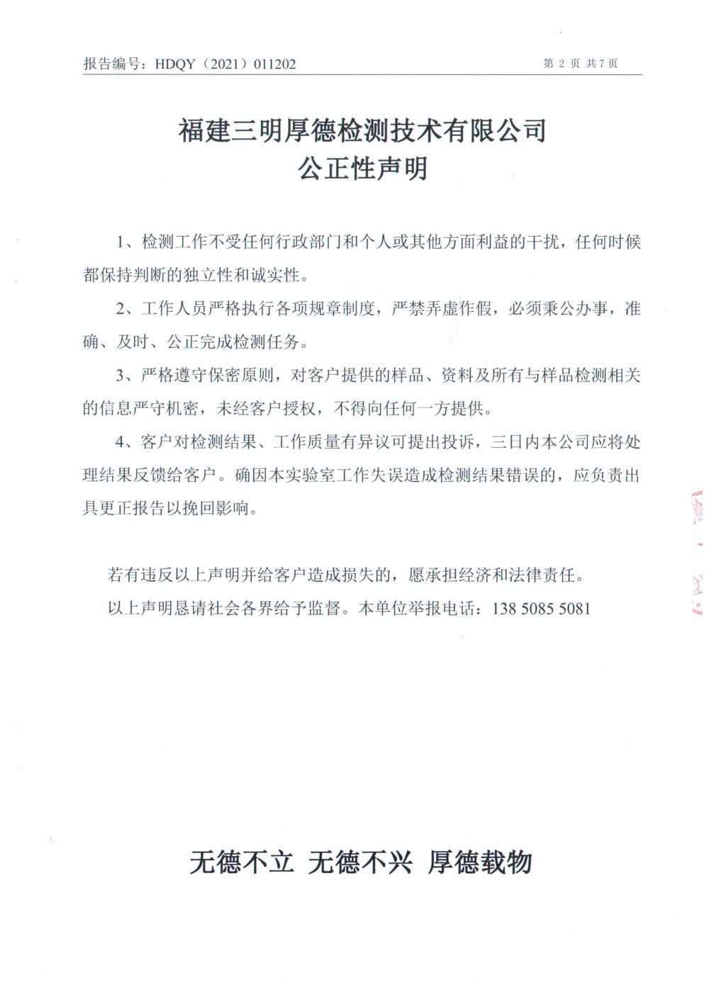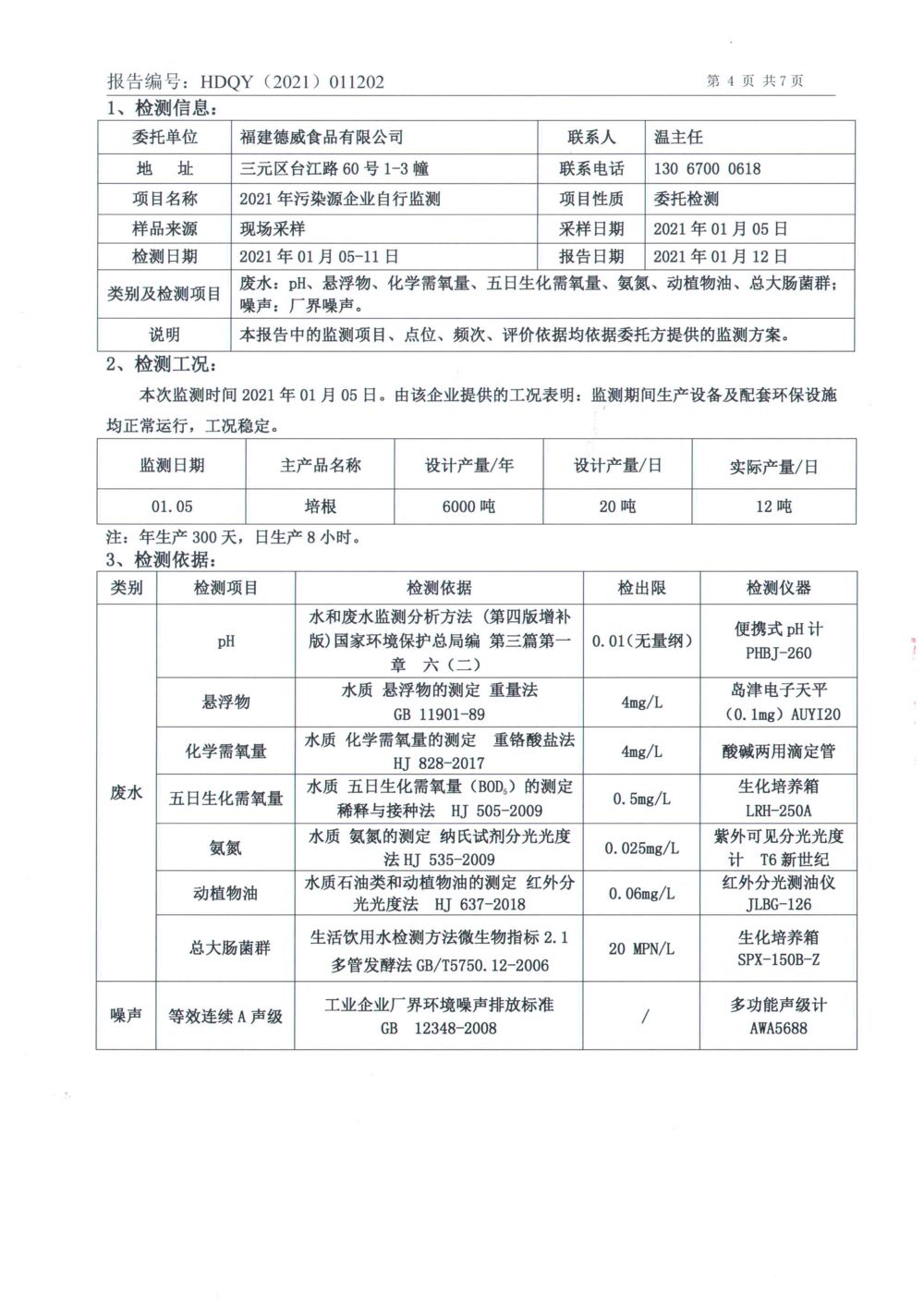 福建德威食品有限公司01月檢測(cè)報(bào)告